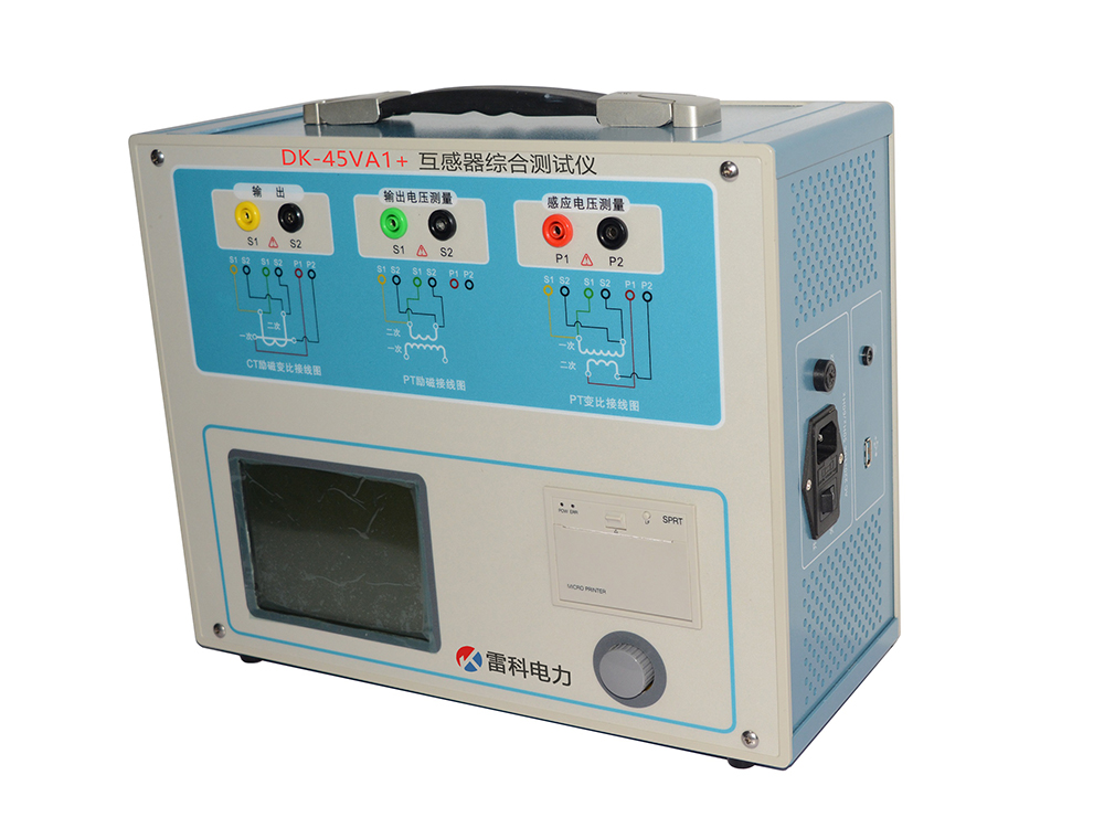 DK-45VA1+互感器綜合測試儀 是在傳統基于調壓器、升壓器、升流器的互感器伏安特性變比極性綜合測試儀基礎上,多方聽取用戶意見、經過大量的市場調研、深入進行理論研究之后研發的新一代革新型CT、PT測試儀器。裝置采用高性能DSP和FPGA、產品性能穩定可靠、功能完備、自動化程度高、測試效率高、在國內處于領先水平,是電力行業用于互感器的專業測試儀器。