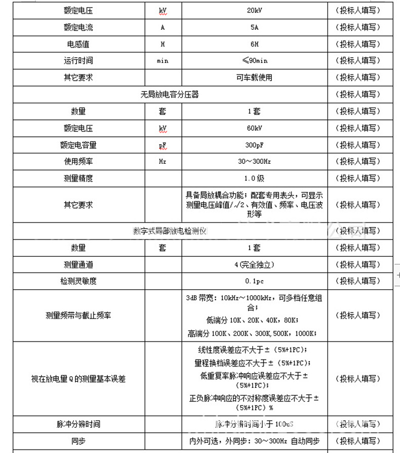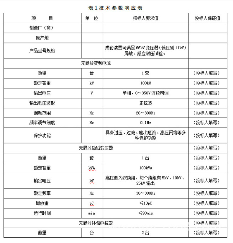1)設備型號及名稱: WJF-300kW無局放感應耐壓試驗裝置