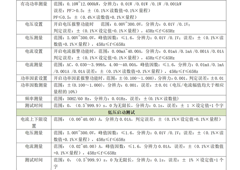 e)功率測試:支持1.000W-12.000kW功率測量范圍;