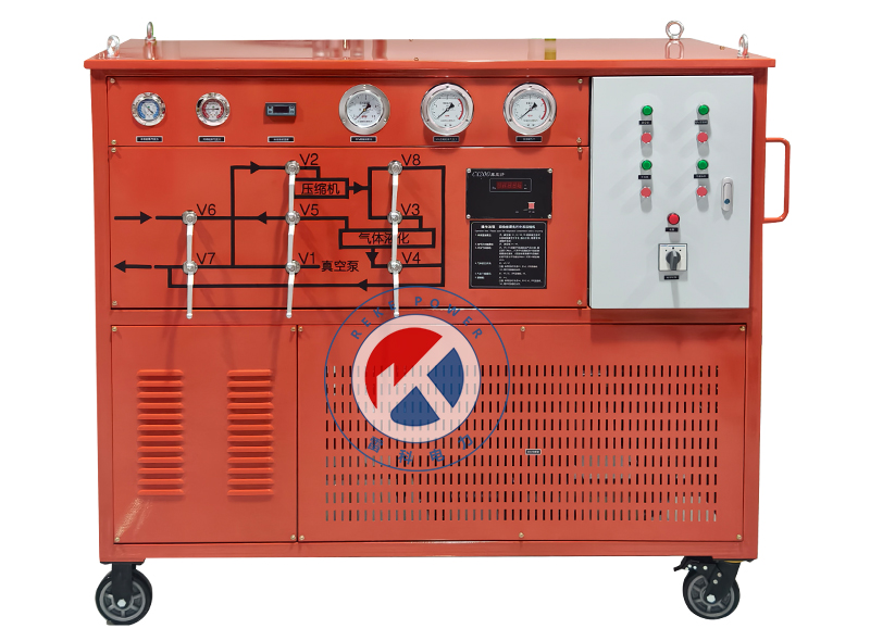 本裝置由SF6氣體回收凈化裝置組成。涉及的產品的主要優點為能直接將回收的SF6氣體以液態的形式貯存入容器,并能將GIS內的殘壓回收至53Kpa,擁有較小的體積,便于移動的放置,擁有較快的抽真空速度,能對回收的SF6氣體進行干燥和過濾,還能回充SF6氣體至SF6電氣設備。