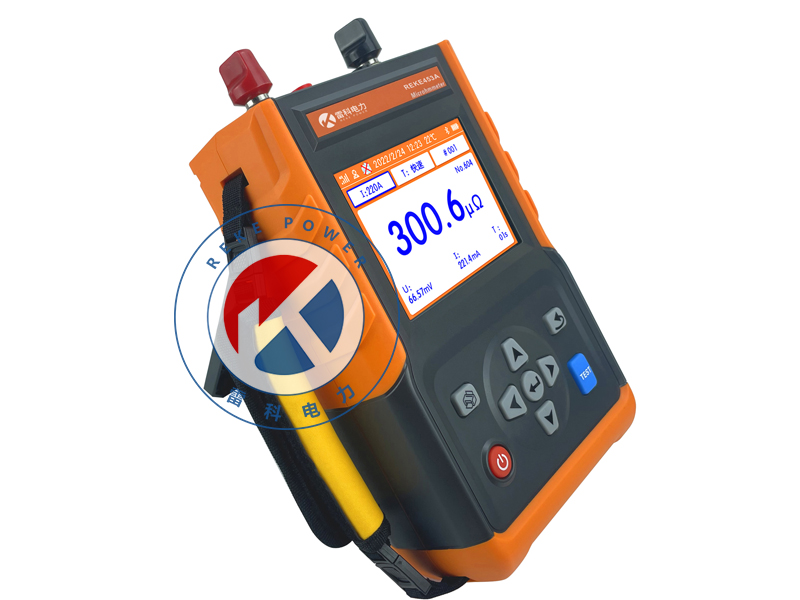 REKE-453A手持式回路電阻測試儀(又稱微歐計)是一款專為測量高壓開關、斷路器接觸電阻及金屬導體回路電阻而設計的精密儀器。內(nèi)置高精度A/D轉(zhuǎn)換器與程控電流源,可輸出高達100A的無紋波直流電流,支持多檔位調(diào)節(jié)與定時連續(xù)測試。具備開路、過熱等多重保護,抗干擾能力強。采用5.6寸彩色LCD屏,操作簡單,便于攜帶,支持數(shù)據(jù)存儲與藍牙APP連接,可實現(xiàn)GPS定位、數(shù)據(jù)上傳、報告生成等功能,顯著提高現(xiàn)場檢測效率。