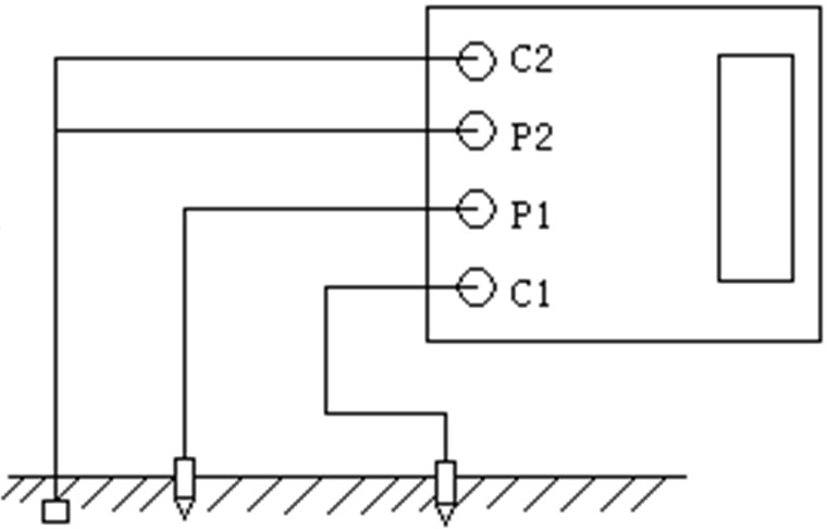 1、測量保護接地電阻時,一定要斷開電氣設(shè)備與電源連接點。在測量小于1Ω的接地電阻時,應(yīng)分別用專用導線連在接地體上,C2在外側(cè)P2在內(nèi)側(cè)(如下圖)所示: